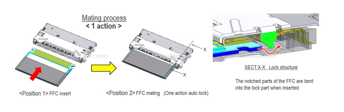 Onun kompakt yapısı (0,50 mm kontak aralığı, 2,2 mm yükseklik) onuözellikle tüketici elektroniğinde, özellikle alanın kritik olduğu uygulamalarda hassas bağlantılar için uygun hale getirir
