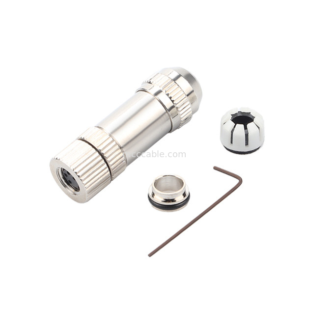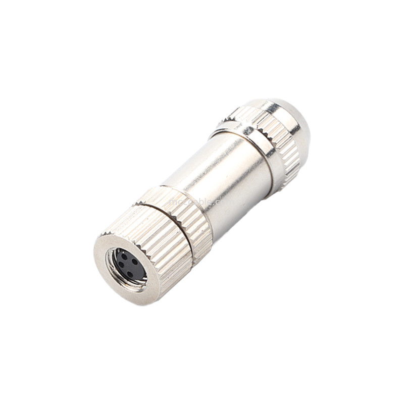 Çemberli su geçirmez konektör M8, metal korumalı kadın fiş,
